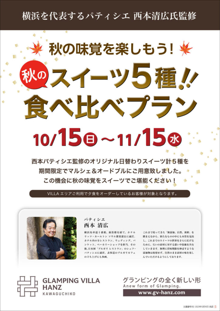 専属パティシエの作ったスイーツ&グランピングヴィラハンズ河口湖からオリジナル日替わりスイーツ