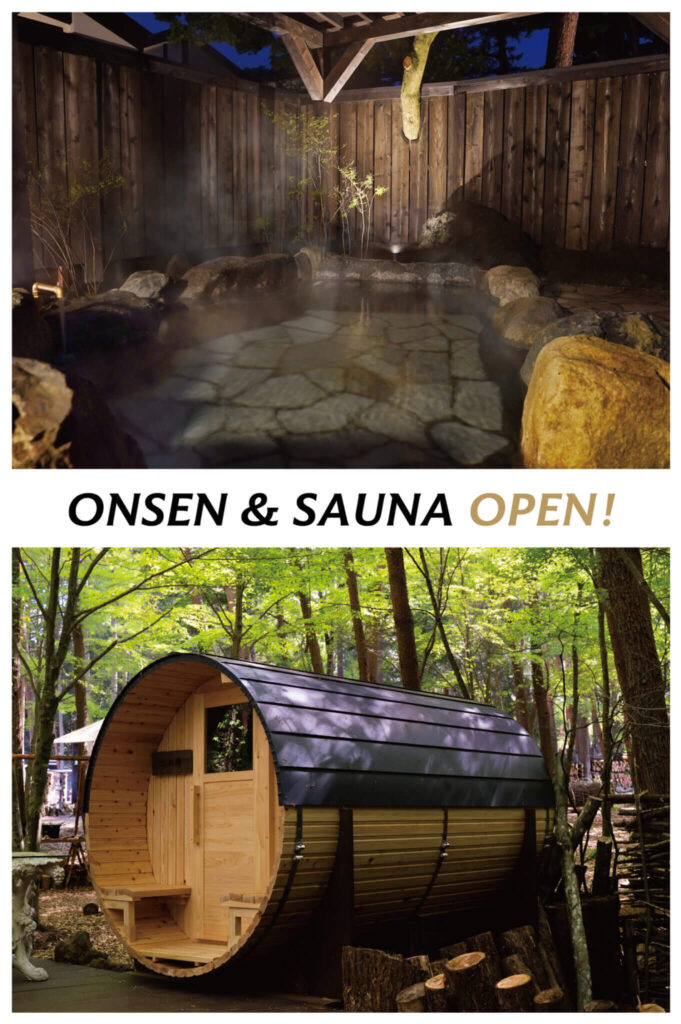 5月に掛け流し貸切天然温泉と森の中のバレルサウナをオープンいたしました!
