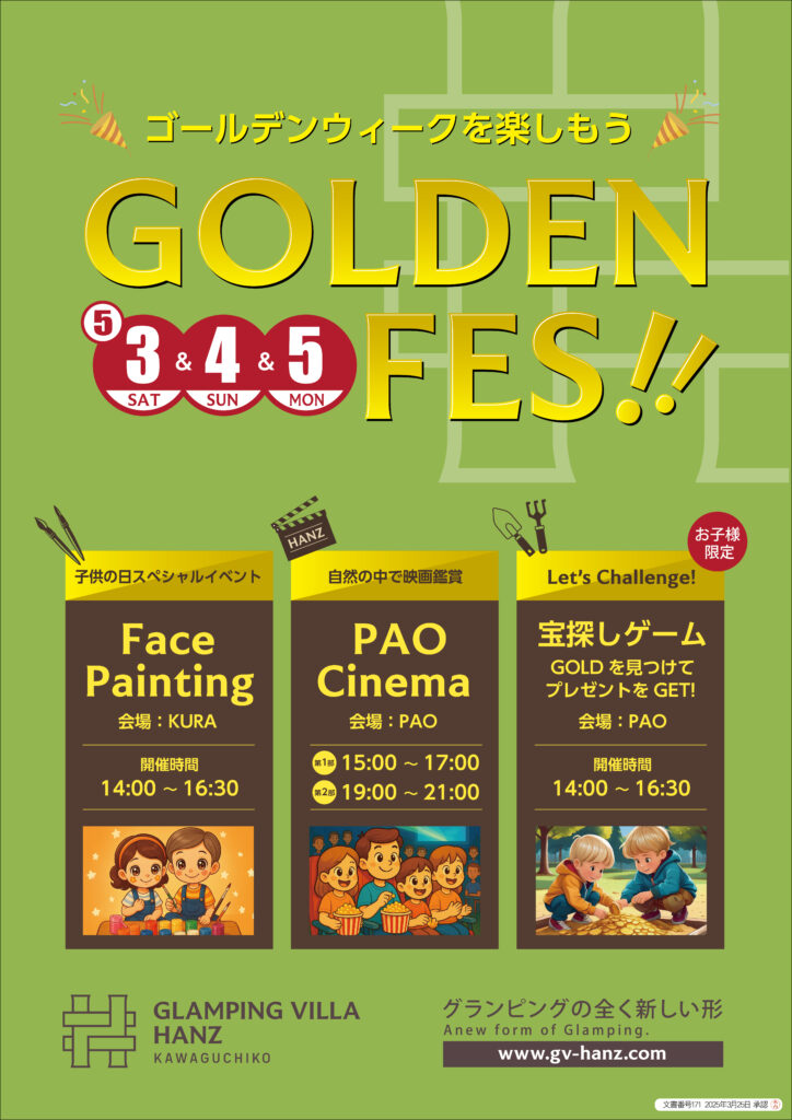 当施設では、2025年5月3日(土)から5日(月)までの3日間、