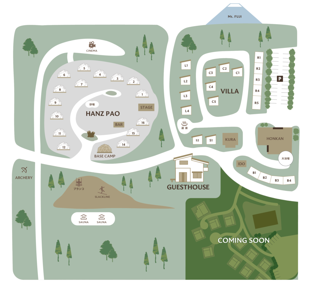 富士北麓の原生林が広がる河口湖の地に VILLA、PAO、OUTDOOR RESIDENCEという個性豊かな3つの施設をご用意しました。