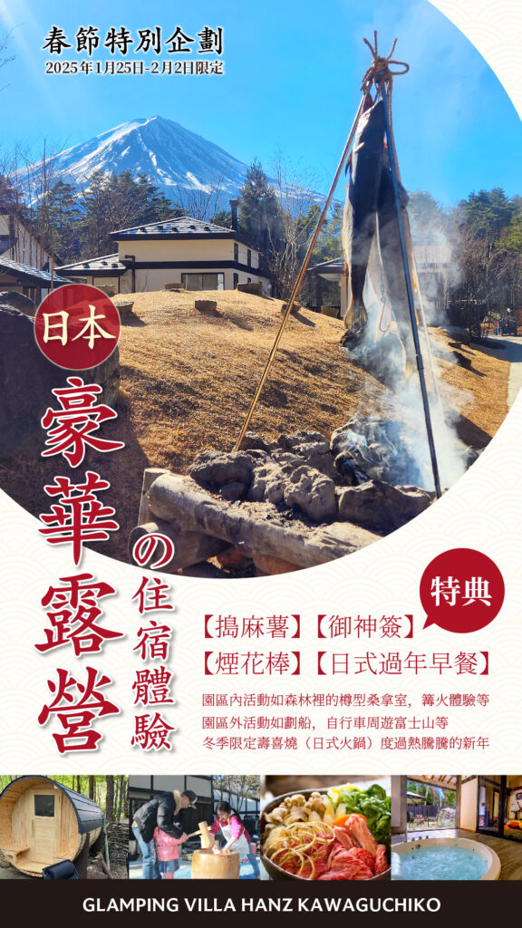 Did you know that 150 years ago, Japan celebrated the New Year according to the lunar calendar? It wasn’t until recent times that Japan began celebrating New Year on January 1st. To honor this tradition and welcome our guests from across the globe, especially those from the Chinese-speaking community, we are thrilled to offer a special event at our glamping facility.