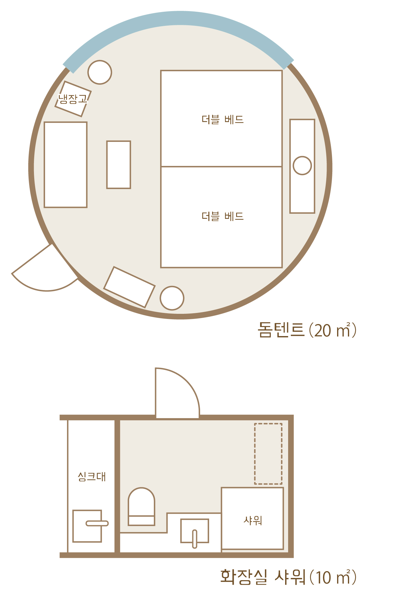 자연 속에서 놀은 뒤에, 자신들만의 쾌적하고 깨끗한 공간으로 깔끔하게.
